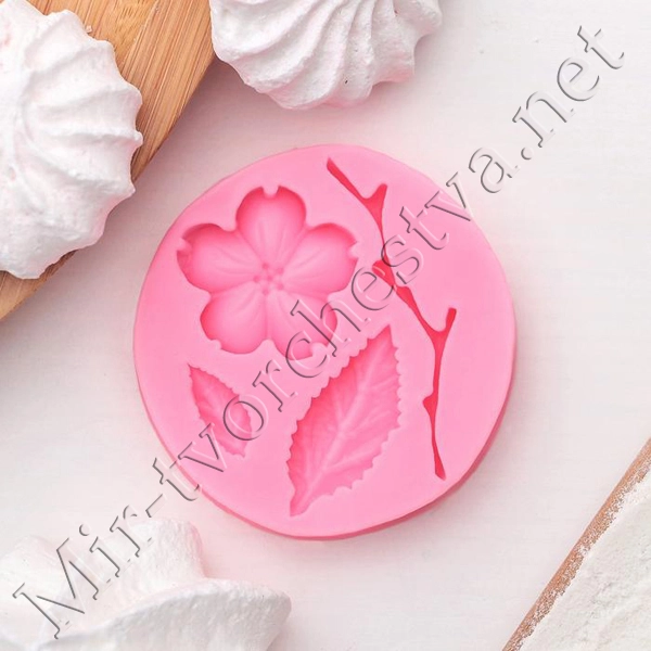 Молд силиконовый, 5,5х0,9 см "Цветок, лист и веточка" 2581360
