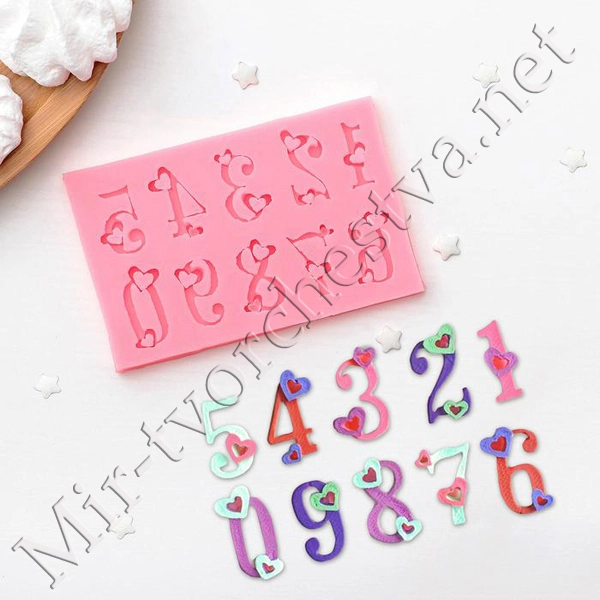 Молд силиконовый, 11,3x7,2 см "Цифры с сердцами"