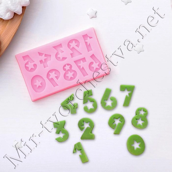 Молд силиконовый, 7,5x4,5 см "Цифры со звёздами"