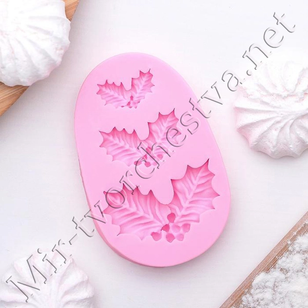 Молд силиконовый, «Ягодки и листочки», 8,5x5,5 см, цвет розовый