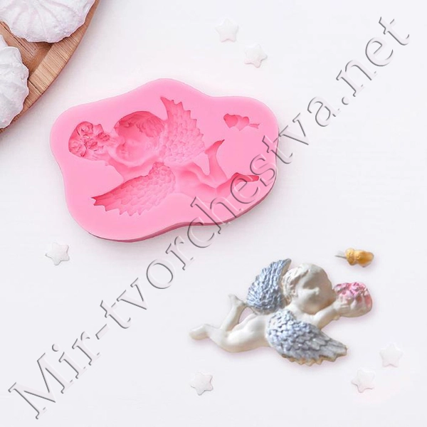 Молд силиконовый, 9,3х6х1,9 см "Ангел с букетом", розовый 2799186