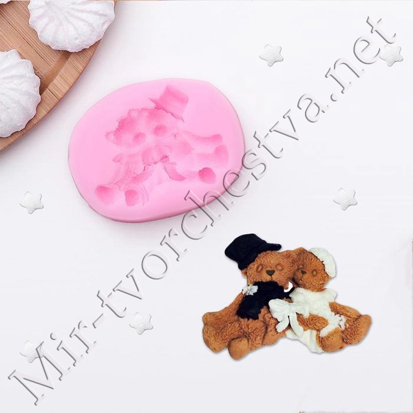 Молд силиконовый, 7,7х5,8х1,9 см "Парочка мишек", розовый 2799189