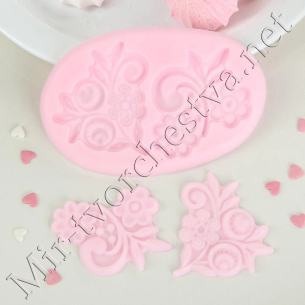 Молд силиконовый, 3 части, 10,5х6,5х0,3 см "Цветы", розовый 2799213
