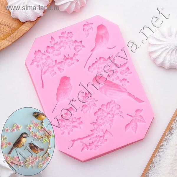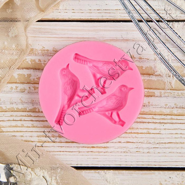 Молд силиконовый, 6,5х1,1 см "Три птицы", розовый 2818782