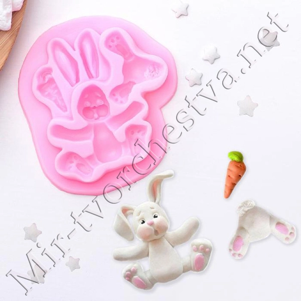 Молд силиконовый, 9,5х8,5х1,5 см "Заяц", розовый 2854729