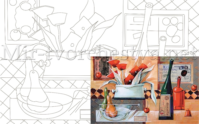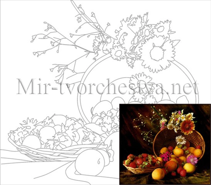 Холст на картоне с контуром, Натюрморт № 23, 30*40, хлопок, акрил, ROSA START