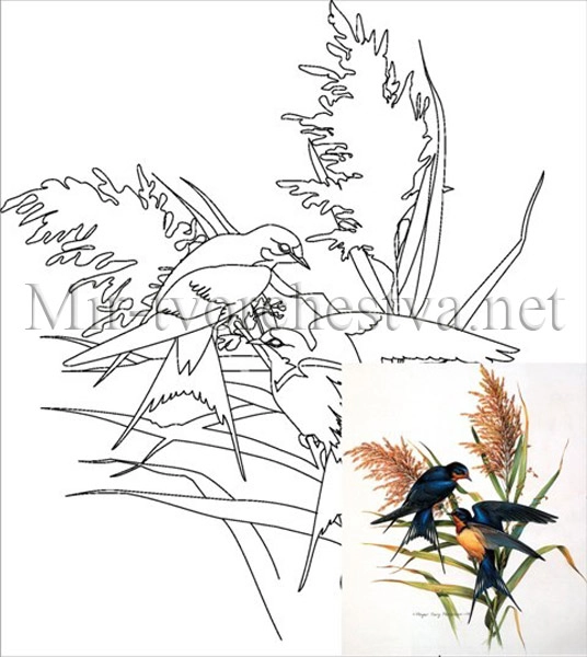 Холст на картоне с контуром, Птицы № 6, 30*40, хлопок, акрил, Этюд