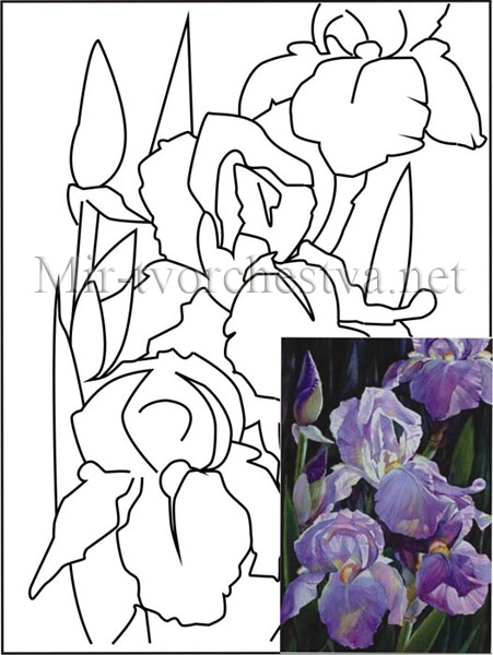 Холст на картоне с контуром, Натюрморт № 14, "Мальвы", 30*40, хлопок, акрил, Этюд