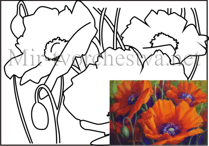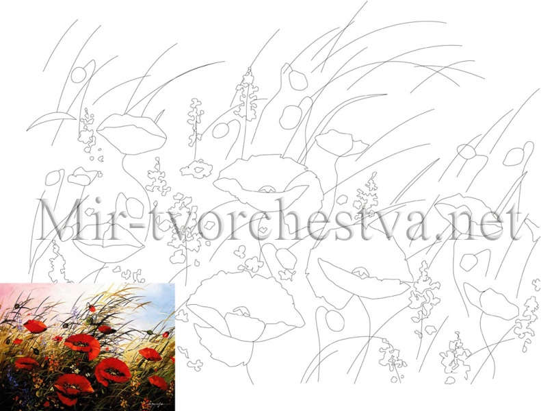 Холст на картоне с контуром, Пейзаж № 9, "Маки", 30*40, хлопок, акрил, Этюд