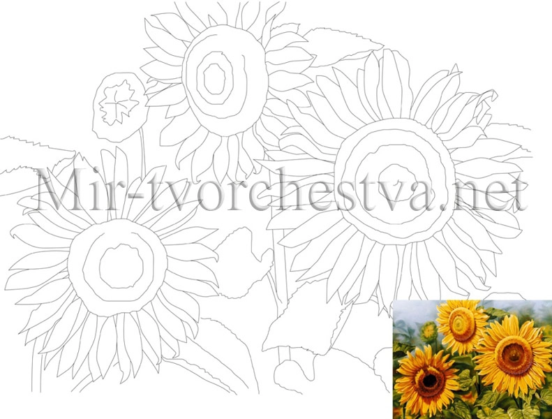 Холст на картоне с контуром, Подсолнухи, 30х40 см, Сонет