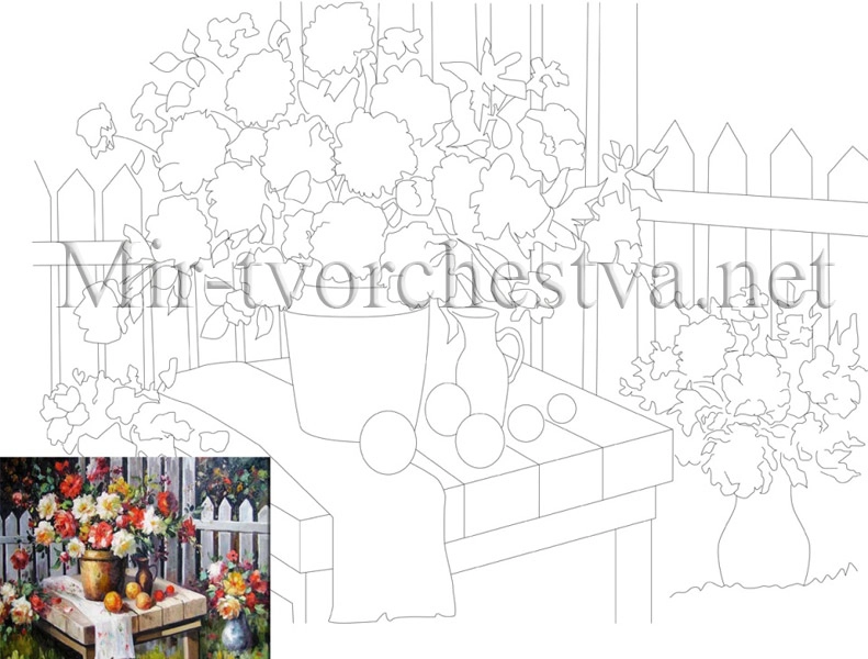 Холст на картоне с контуром, Натюрморт № 18, 30*40,Хлопок, акрил, ROSA Talent
