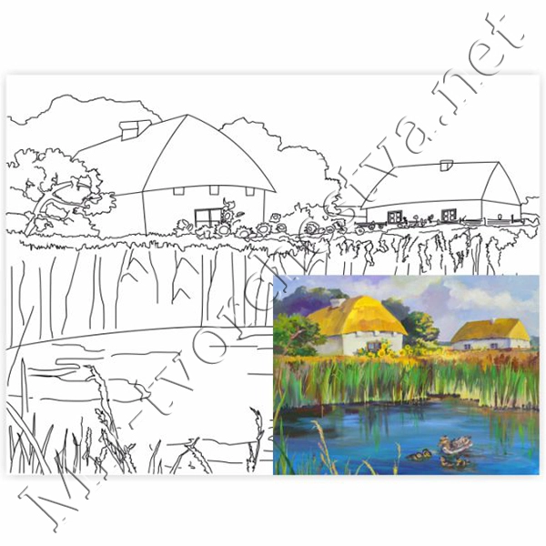 Холст на картоне с контуром, Пейзаж № 18, «Украинское село», 30*40, хлопок, акрил, Этюд