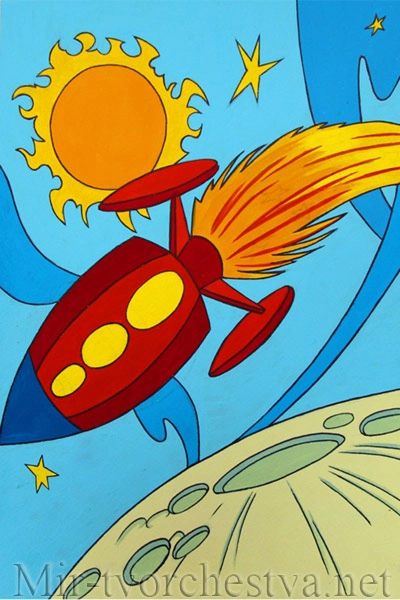 Холст на картоне с контуром, Мультфильм №32, «Ракета», 20*30, хлопок, акрил, Этюд