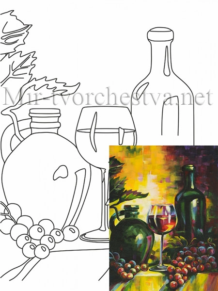 Холст на картоне с контуром, Натюрморт № 7, 30*40, хлопок, акрил, Этюд