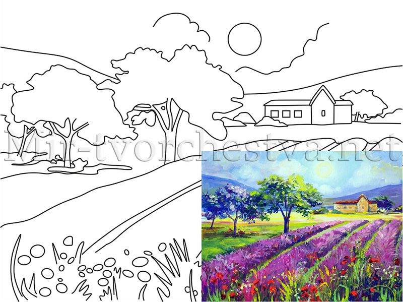 Холст на картоне с контуром, Пейзаж № 21, 30*40, хлопок, акрил, ROSA START