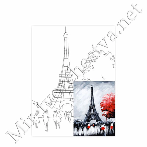 Холст на картоне с контуром, Города "Париж 2", 30*40, хлопок, акрил, ROSA START