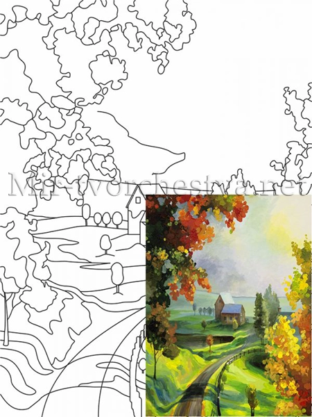 Холст на картоне с контуром, Пейзаж № 17, «Тропа домой», 30*40,Хлопок, акрил, ROSA Talent
