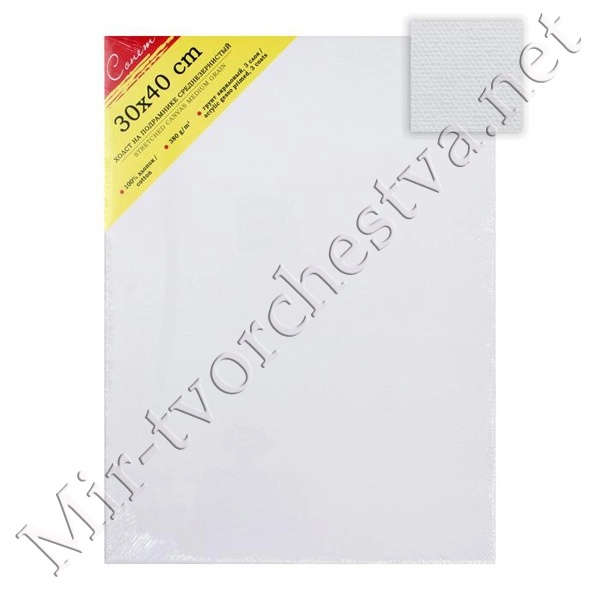 Холст на подрамнике, 30*40 см, 45% хлопок, 55% лен, 380 г/м2, Среднее зерно, Сонет